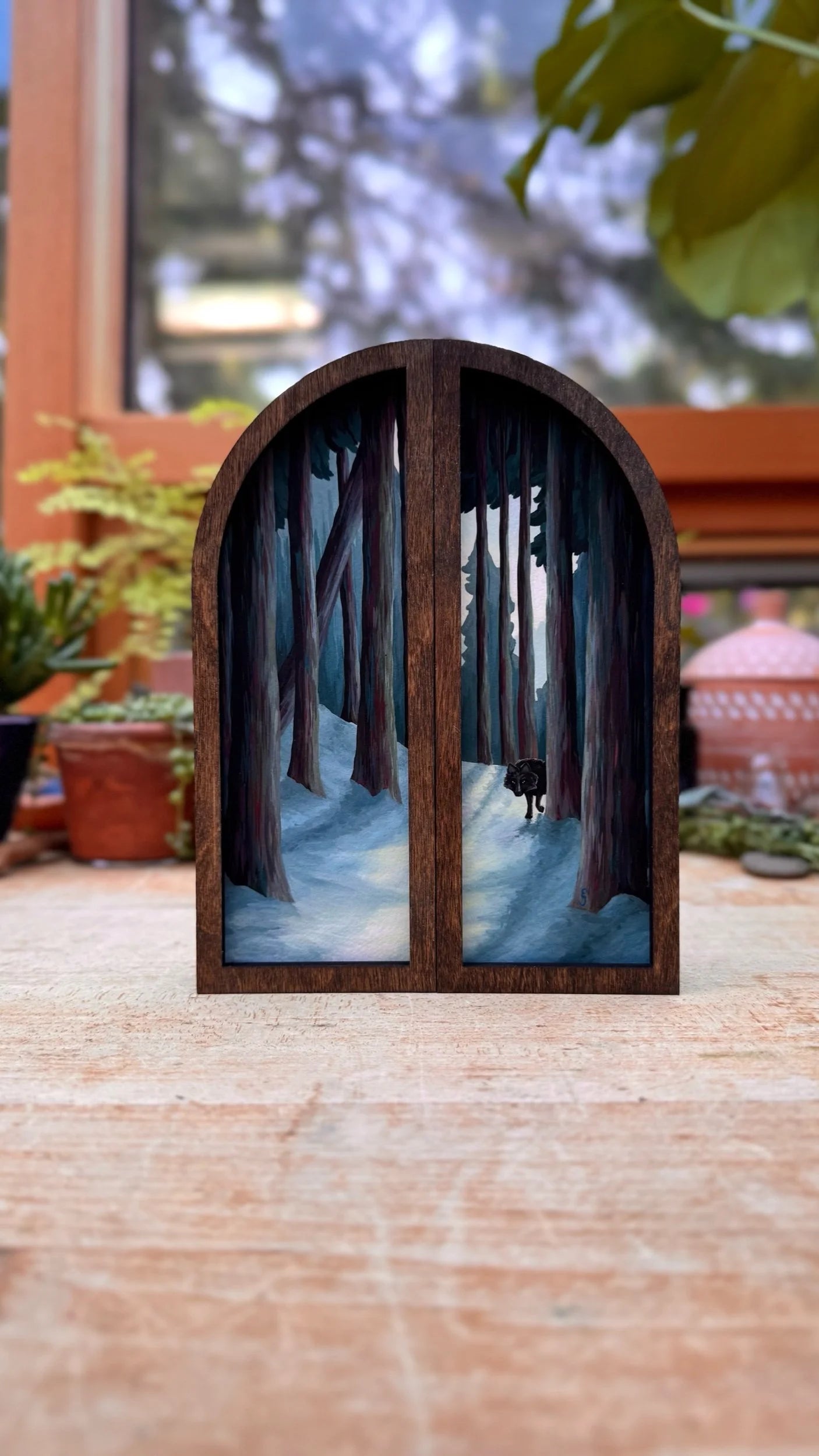 Please note, each print is cut and assembled by hand in a laser cut and hand-stained frame, so there may be slight variations between prints. Each one is signed on the back. Please also note, each hinge has four screws to allow for a more delicate frame design - the extra two aren’t missing :)