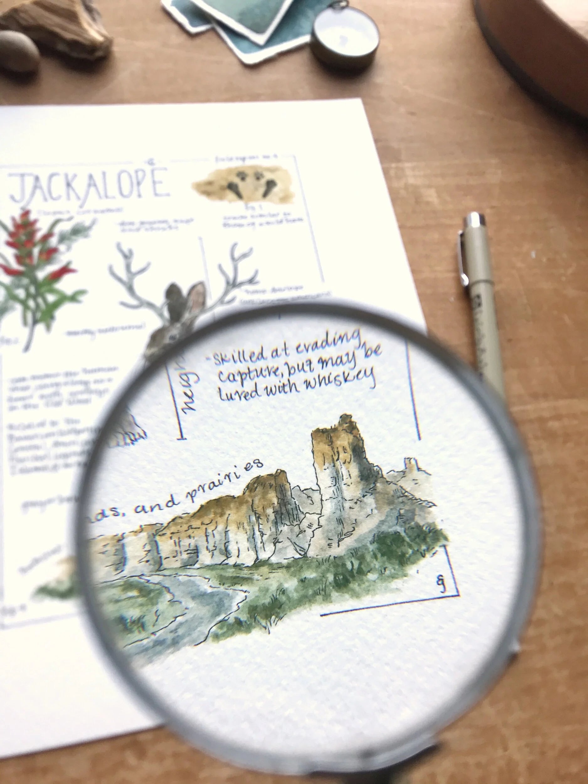Giclée fine art print of my original watercolor and ink field report about the elusive Jackalope. This detailed report is meant to be from the field journal of an intrepid scientist.